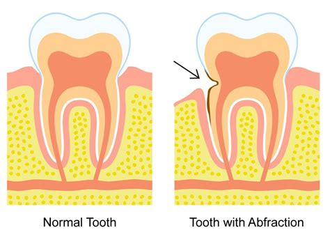 Long before the visible signs of abrasion are detected you will feel the sensitive teeth as an early warning that you are abfraction your teeth. Because abfraction is due to bruxism all the associated symptoms of bruxism should be use as an even earlier warning of the impending damage of abfraction. By the time you feel the sensitive teeth – usually cold – your teeth has already started to break even if you can see it yet. Remember the damage is irreversible. You can only hope to stop the progress by firstly being aware and secondarily using an occlusion splint at night when you sleep.