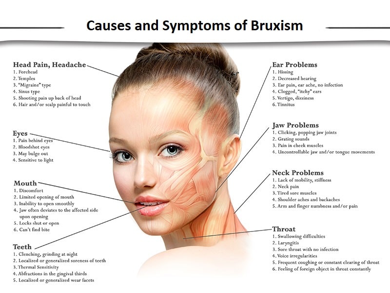For many bruxism is asymptomatic because it occurs gradually. The physical damage to the dentition evident by tooth damage wear and attrition and if left for too long will result in chronic issues.